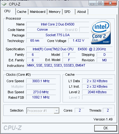 Результат разгона Intel Core 2 Duo (Conroe-2M)