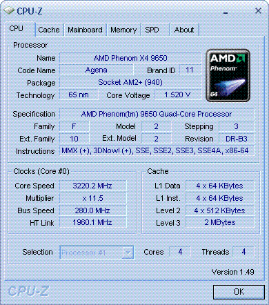 Результат разгона AMD Phenom X4 (Agena)