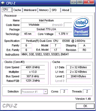 Результат разгона Intel Pentium Dual-Core (Wolfdale-2M)