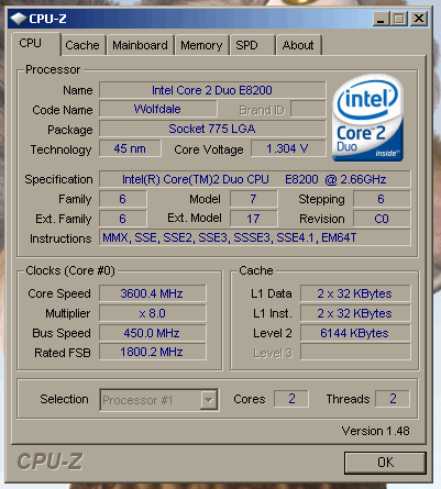 Результат разгона Intel Core 2 Duo (Wolfdale)