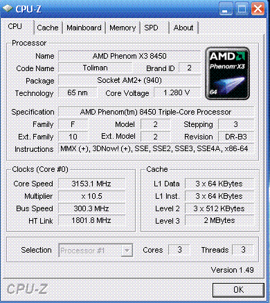 | Процессор (ядро) | AMD Phenom X3 (Toliman) |