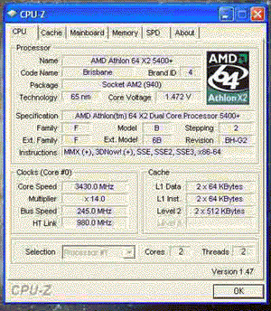 Результат разгона AMD Athlon 64 X2 (Brisbane)