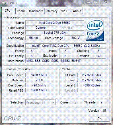 | Разгон, максимально стабильная частота (FSB x Ratio) | 3430 (490 x 7.0) |