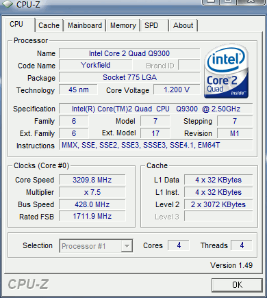 Результат разгона Intel Core 2 Quad (Yorkfield)