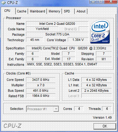 Результат разгона Intel Core 2 Quad (Yorkfield)