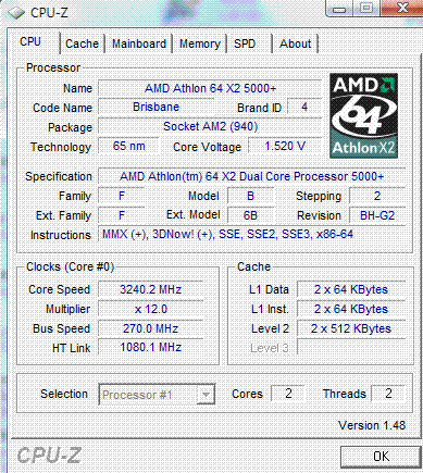 Результат разгона AMD Athlon 64 X2 (Brisbane)