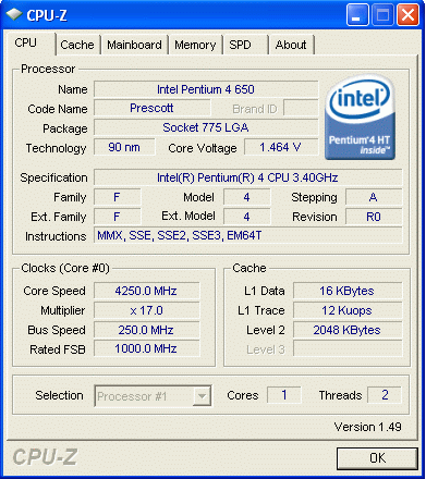| Процессор (ядро) | Intel Pentium 4 (Prescott-2M) |