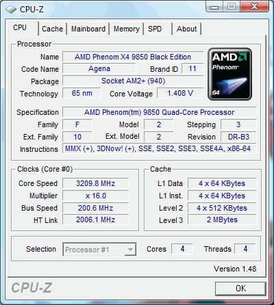 | Процессор (ядро) | AMD Phenom X4 (Agena) |