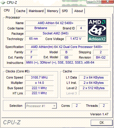 Результат разгона AMD Athlon X2 (Brisbane)
