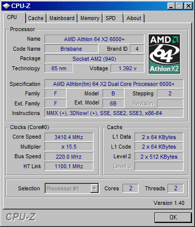 Результат разгона AMD Athlon 64 X2 (Brisbane)