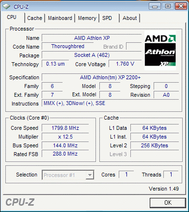 | Процессор (ядро) | AMD Athlon XP (Thoroughbred) |