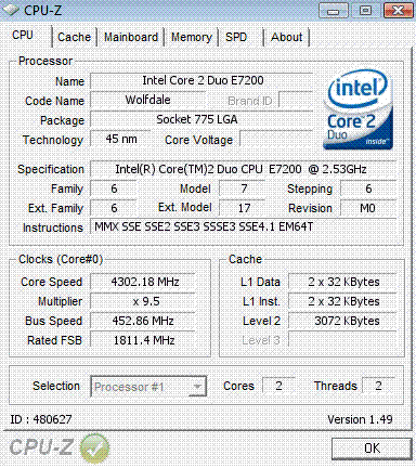 Результат разгона Intel Core 2 Duo (Wolfdale)