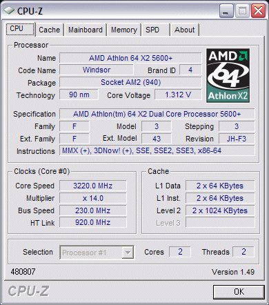 | Процессор (ядро) | AMD Athlon 64 X2 (Windsor) |