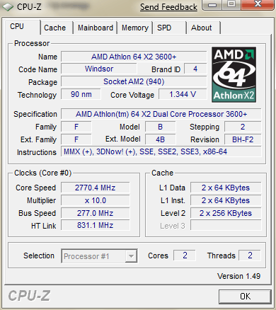 Результат разгона AMD Athlon 64 X2 (Windsor)
