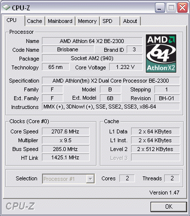 Результат разгона AMD Athlon 64 X2 (Brisbane)