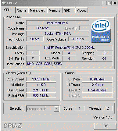 | Процессор (ядро) | Intel Pentium 4 (Prescott) |