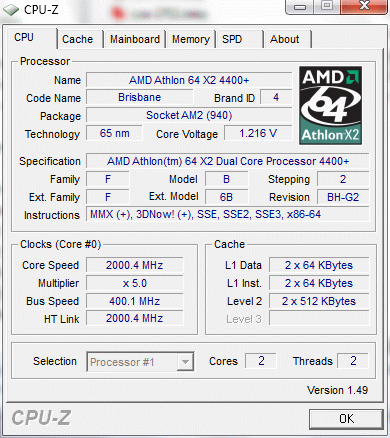 | Процессор (ядро) | AMD Athlon X2 (Brisbane) |