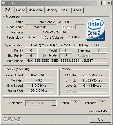 Результат разгона Intel Core 2 Duo (Wolfdale)