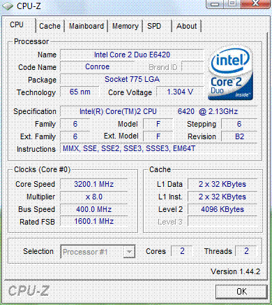 | Процессор (ядро) | Intel Core 2 Duo (Conroe) |