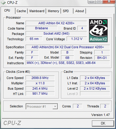 | Процессор (ядро) | AMD Athlon 64 X2 (Brisbane) |