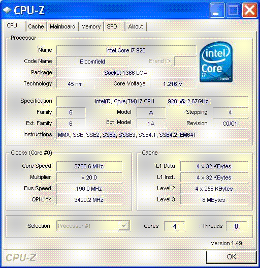 Результат разгона Intel Core i7 (Bloomfield)