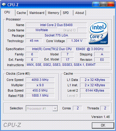 Результат разгона Intel Core 2 Duo (Wolfdale)