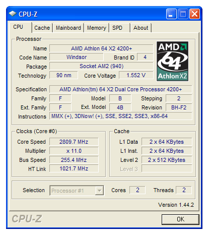 | Процессор (ядро) | AMD Athlon 64 X2 (Windsor) |
