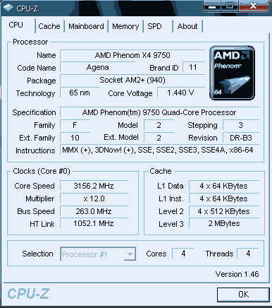 | Процессор (ядро) | AMD Phenom X4 (Agena) |