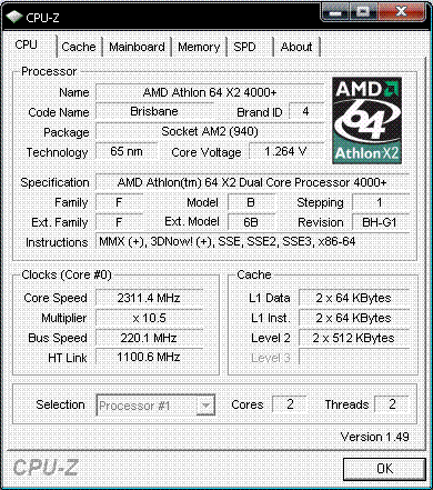 Результат разгона AMD Athlon 64 X2 (Brisbane)