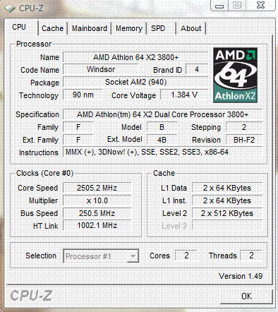| Процессор (ядро) | AMD Athlon 64 X2 (Windsor) |