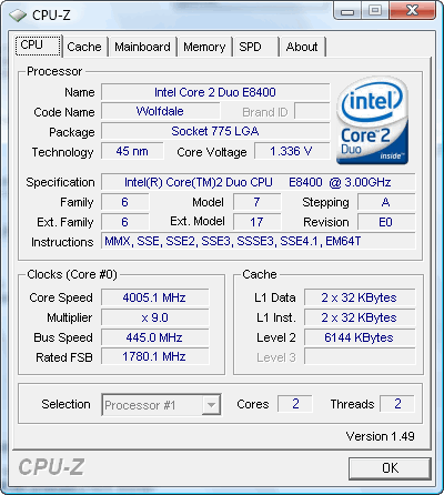Результат разгона Intel Core 2 Duo (Wolfdale)