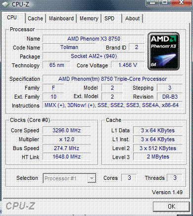 | Процессор (ядро) | AMD Phenom X3 (Toliman) |