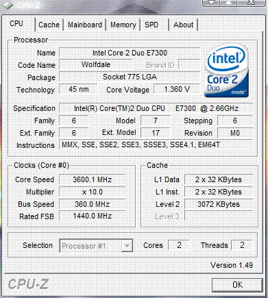 | Разгон, максимально стабильная частота (FSB x Ratio) | 3600 (360 x 10.0) |
