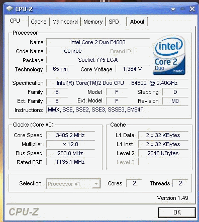 Результат разгона Intel Core 2 Duo (Conroe-2M)