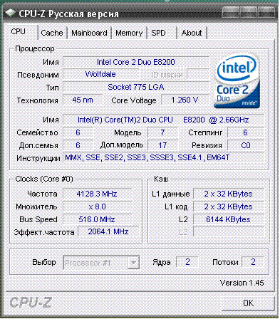 Результат разгона Intel Core 2 Duo (Wolfdale)