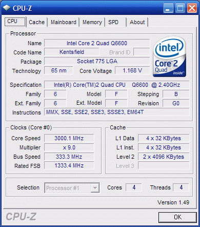 Результат разгона Intel Core 2 Quad (Kentsfield)