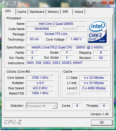 Результат разгона Intel Core 2 Quad (Kentsfield)