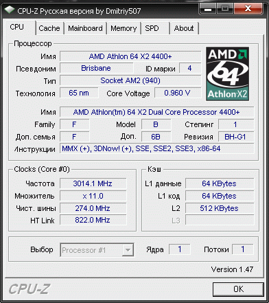 | Процессор (ядро) | AMD Athlon 64 X2 (Brisbane) |