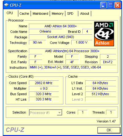 | Процессор (ядро) | AMD Athlon 64 (Orleans) |