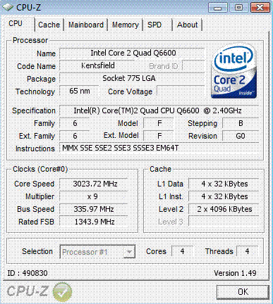 Результат разгона Intel Core 2 Quad (Kentsfield)