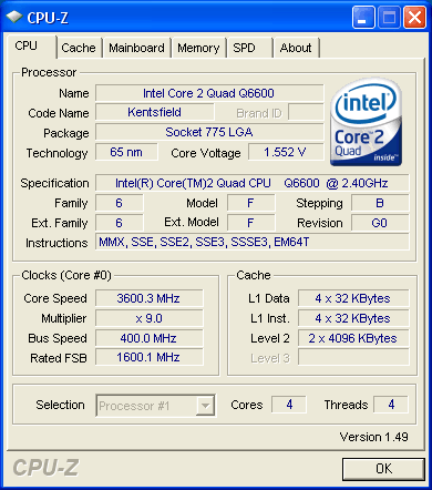 Результат разгона Intel Core 2 Quad (Kentsfield)