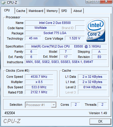 Результат разгона Intel Core 2 Duo (Wolfdale)