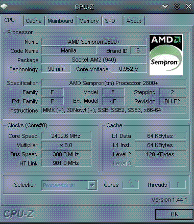 | Процессор (ядро) | AMD Sempron (Manila) |