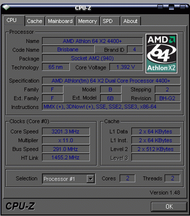 Результат разгона AMD Athlon 64 X2 (Brisbane)