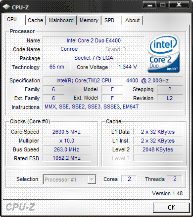 | Разгон, максимально стабильная частота (FSB x Ratio) | 2630 (263 x 10.0) |