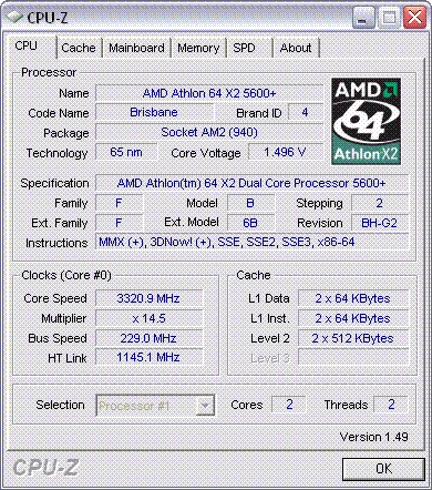 Результат разгона AMD Athlon 64 X2 (Brisbane)