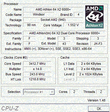 Результат разгона AMD Athlon 64 X2 (Windsor)