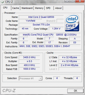 Результат разгона Intel Core 2 Quad (Yorkfield)