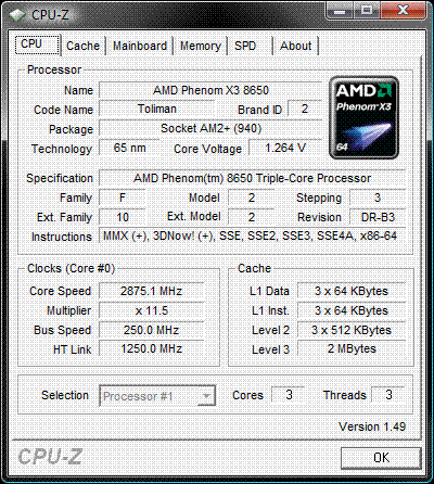 | Процессор (ядро) | AMD Phenom X3 (Toliman) |