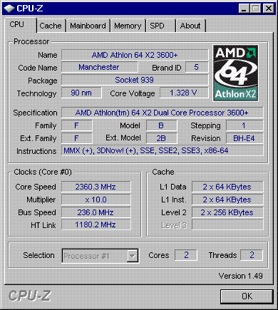 | Процессор (ядро) | AMD Athlon 64 X2 (Manchester) |